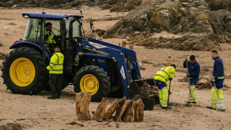 A operação estende-se ao longo de seis quilómetros de costa, abrangendo as praias do Homem do Leme, Gondarém, Molhe, Ingleses e Carneiro. No terreno, uma equipa de seis operacionais, apoiada por um trator e carrinhas de carga, trabalha contra o relógio para remover os detritos acumulados e a areia que invadiu as zonas de circulação.